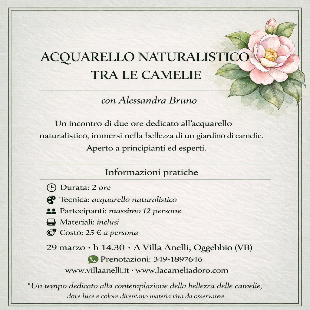 It includes a special opening of the garden, where visitors will be able to admire camellias and other picturesque corners of the estate. This is followed by a watercolour class with Alessandra Bruno, dedicated to en plein air painting and the artistic interpretation of the natural motifs found in the garden: a creative and immersive experience in the spring countryside.